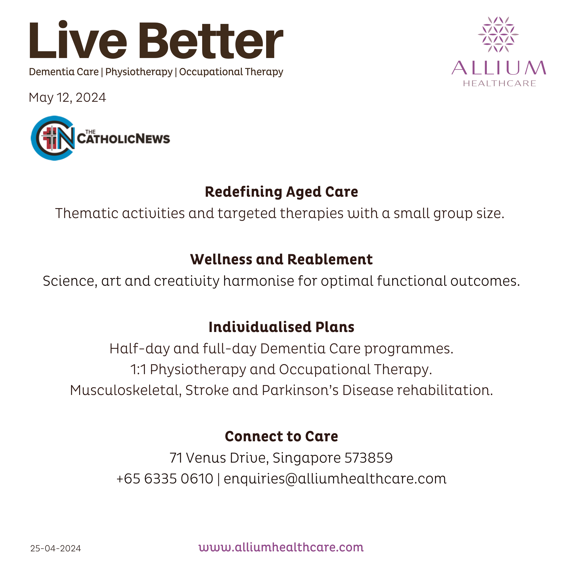 Connect to care at +65 6335 0610 or enquiries@alliumhealthcare.com