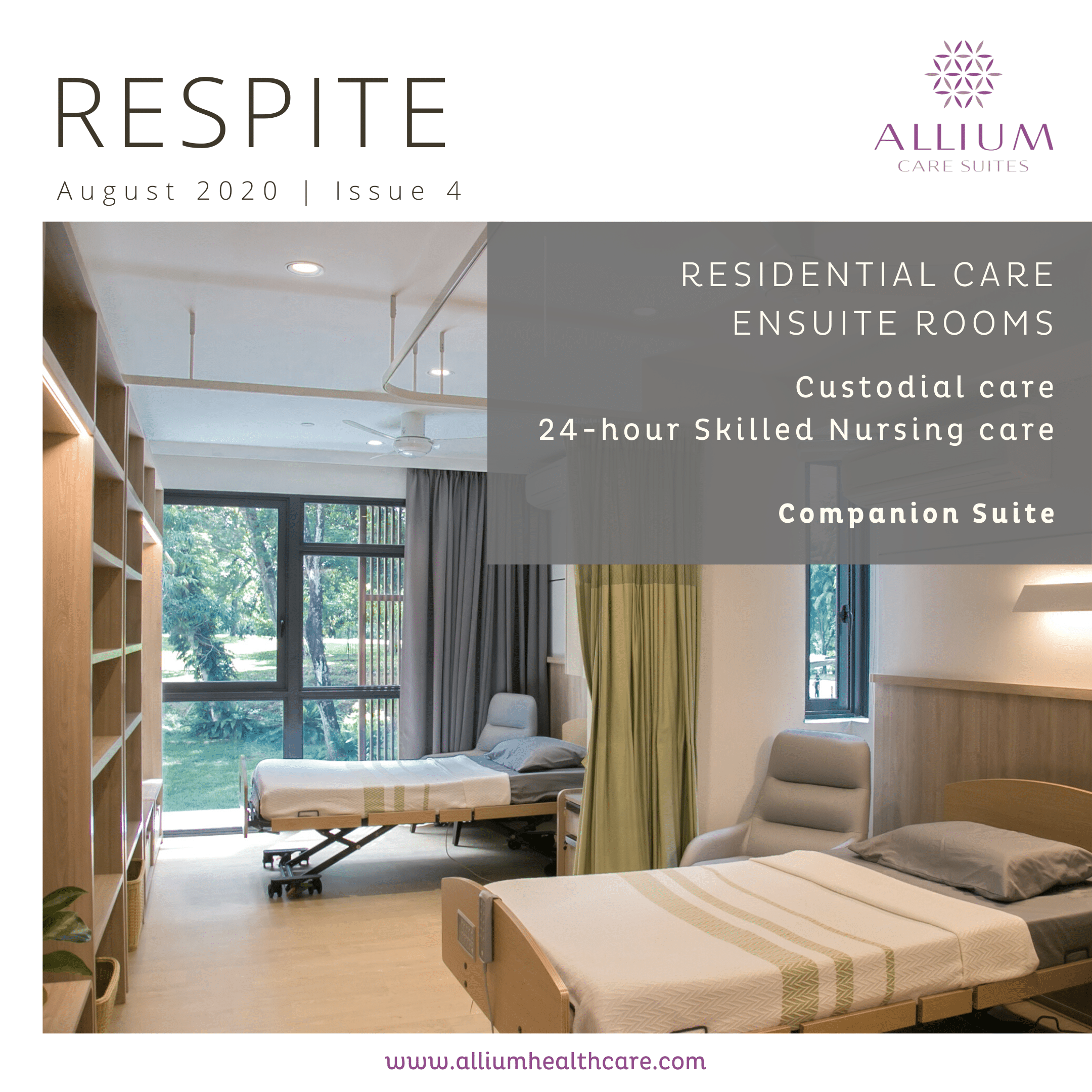 Meticulously designed as Single, Companion and Executive suites, with ensuite bathrooms, Allium Care Suites brings together the finest in hospitality and residential care.